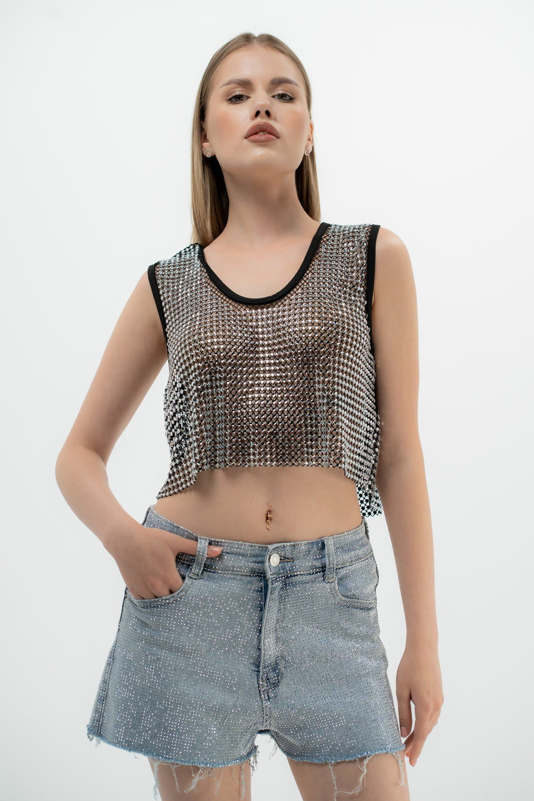Mirror Gleam Top (Shine from every angle with the Mirror Gleam Top, a cropped statement...