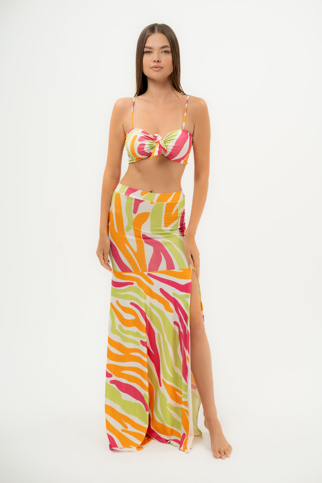 The Tropic Wave Set (A striking two-piece with a knotted crop top and slit maxi...