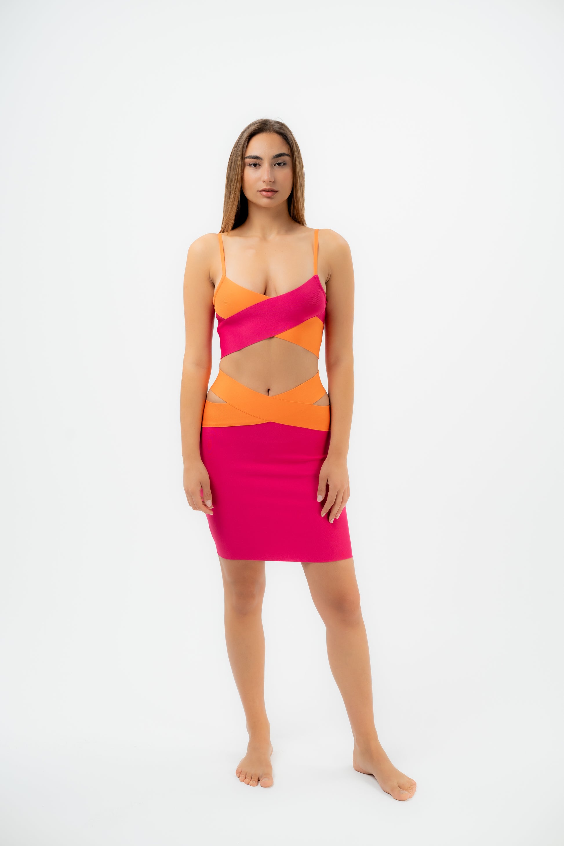 Crossover Crush Set (Bold cut-outs, vibrant colors, and a curve-hugging fit. Available in Blue/Neon Yellow & Pink/Orange. )