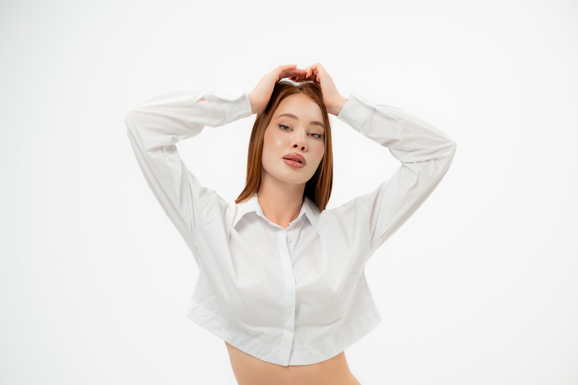 The Sharp Crop Shirt (A crisp, cropped white shirt with a structured collar and clean lines. Minimal yet chic, it’s the perfect staple piece that transitions effortlessly from day to night.)